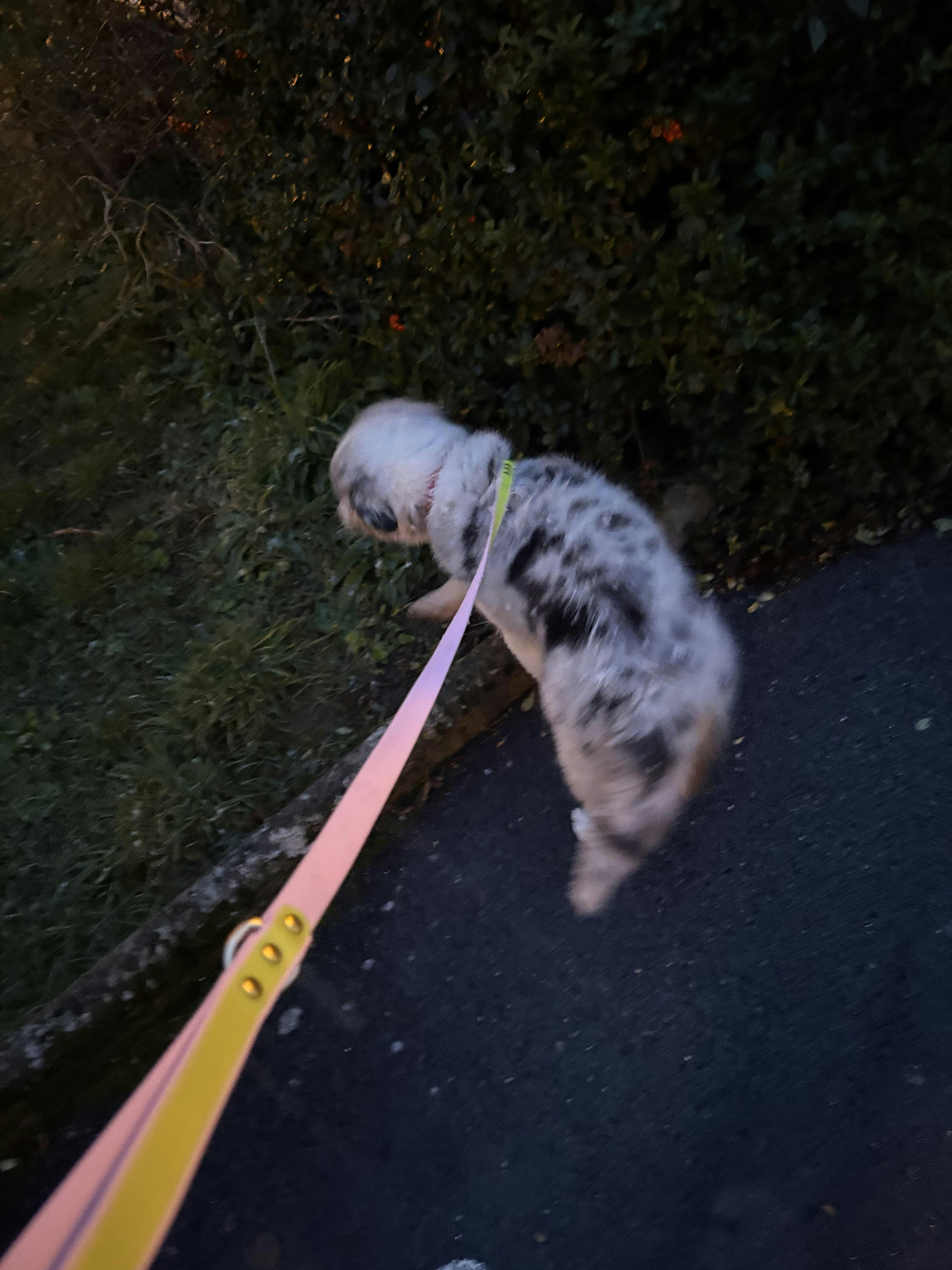 Laisse très jolie, de bonne taille pour des balades en ville, la poignée c’est top le côté fluorescent aussi c’est génial