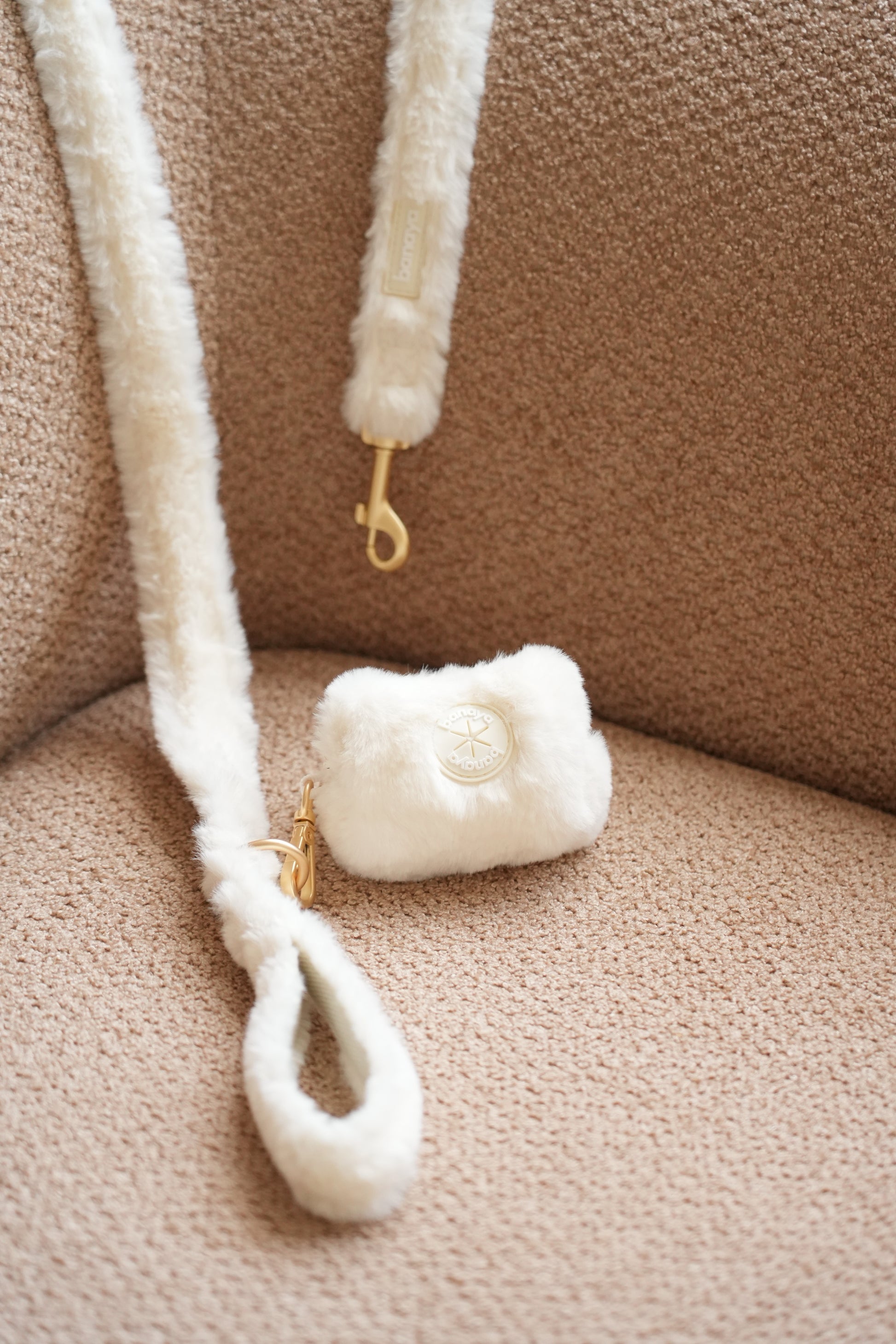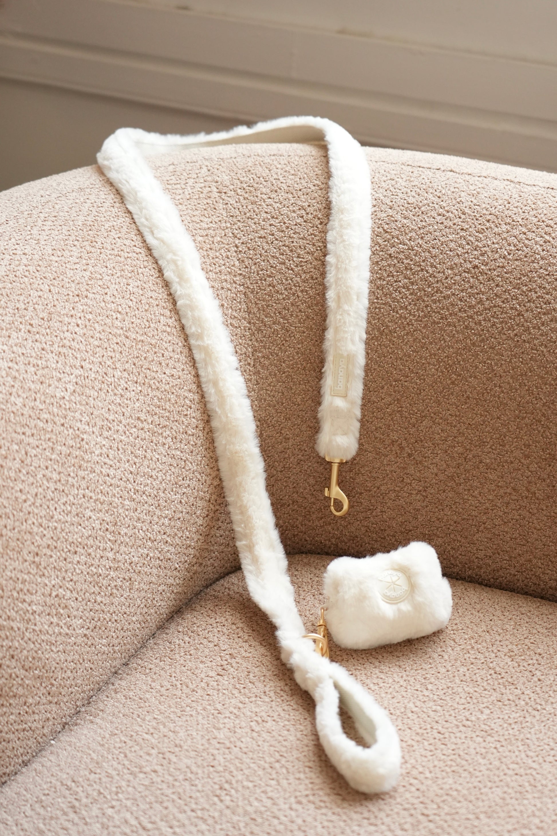 Douce, élégante et confortable, notre laisse en fausse fourrure de qualité supérieure accompagne vos promenades avec style.