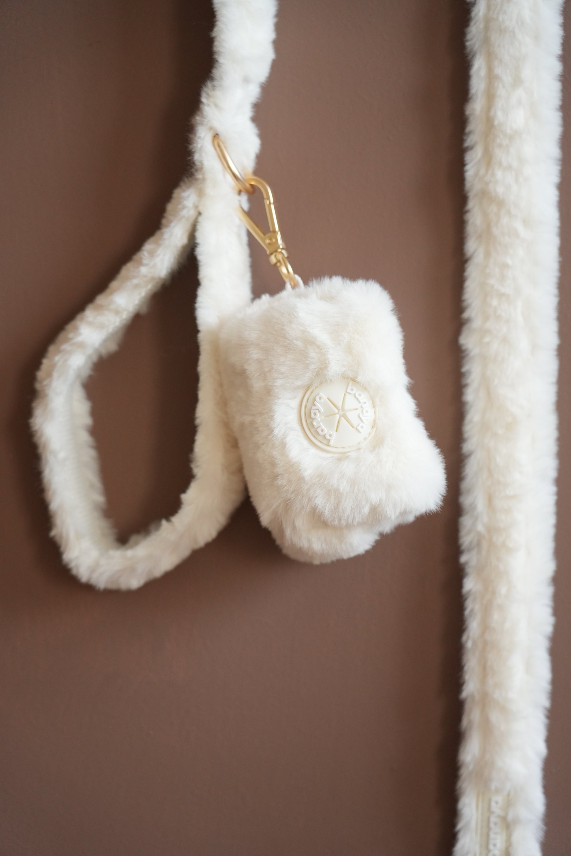 Laisse en fausse fourrure 1,5m + petit sac
